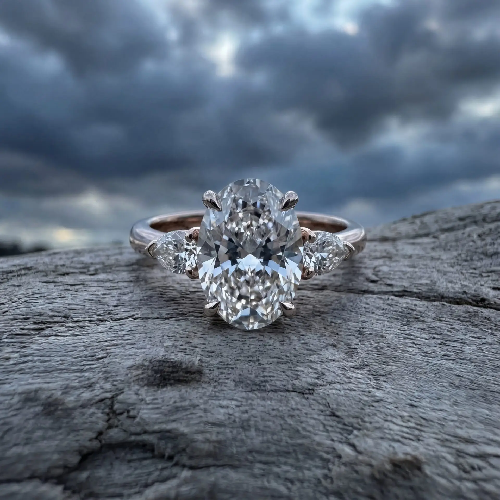 Diamonds Size And Count: 3.00 CT * 1 Pcs Oval Shape and 0.25 CT *2 Pcs Pear Shape